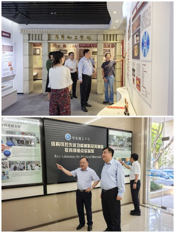 会后,王宏伟一行参观了张金龙教授所在的结构可控先进功能材料及其制备教育部重点实验室,以及华东理工大学建设成就展。
