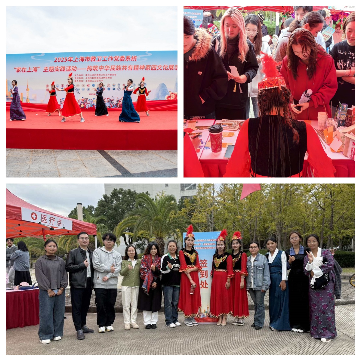 为深入学习贯彻党的二十届四中全会精神,全面落实习近平总书记关于铸牢中华民族共同体意识、做好新时代统一战线工作的重要指示精神,以文化凝心铸魂、以精神凝聚力量。11月5日,由上海市教卫工作党委主办,上海市民族团结进步联合会支持,上海第二工业大学承办的2025年上海市教卫工作党委系统“家在上海”主题实践活动——构筑中华民族共有精神家园文化展示在上海第二工业大学举行。来自上海的40所高校的千余名各民族师生参加了本次文化展示活动。市教卫工作党委副书记张艳萍,市教卫工作党委统战处处长张隽,市民宗局民族一处处长任真,浦东新区区委统战部副部长、区民宗办副主任达明宗,上海第二工业大学党委书记陆敏,各参展高校统战干部及各民族师生代表出席了开幕式。我校党委统战部常务副部长赵菡,社会与公共管理学院团委书记张记蒙及各民族学生出席活动,向上海市各高校师生展示华理的民族工作风采。