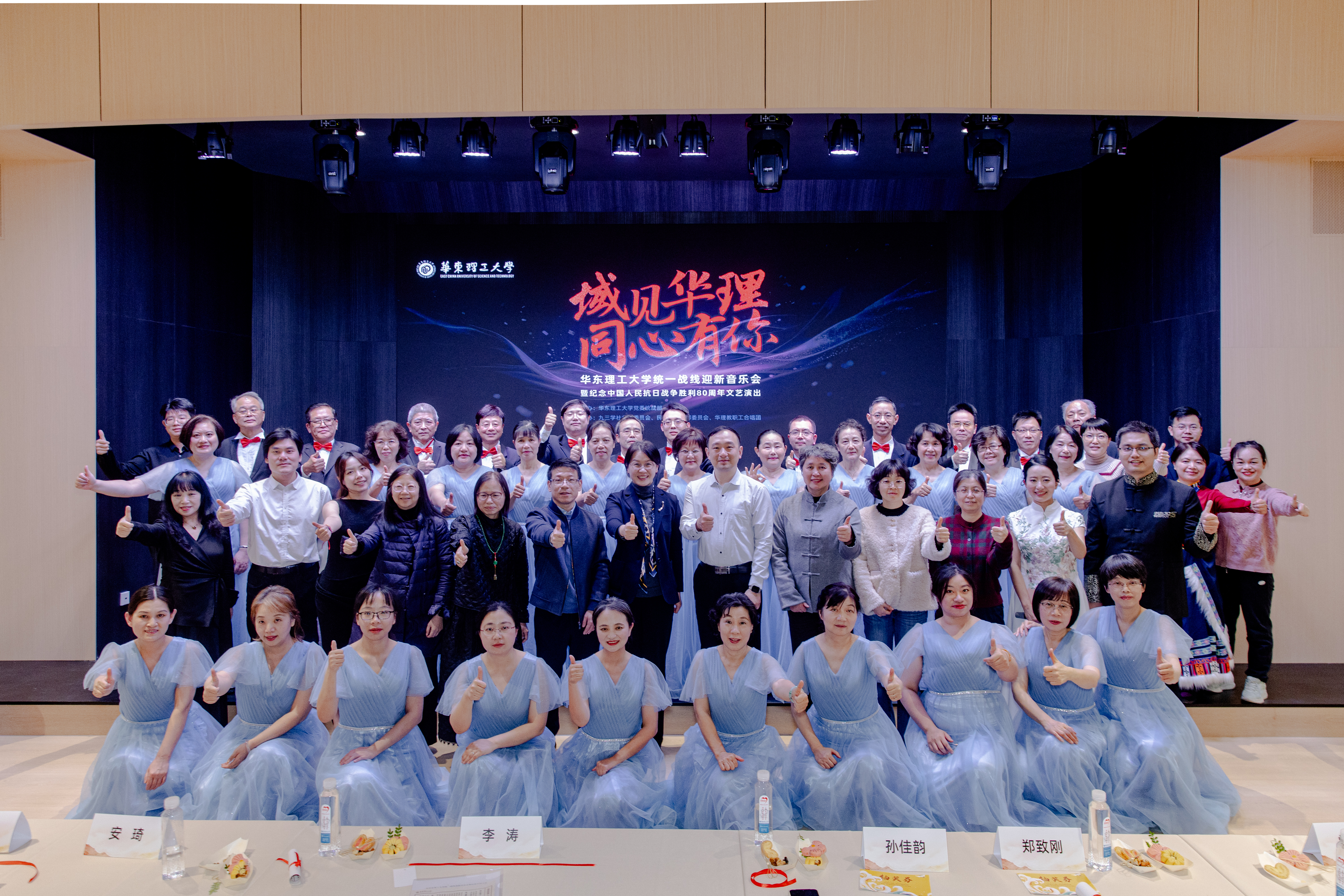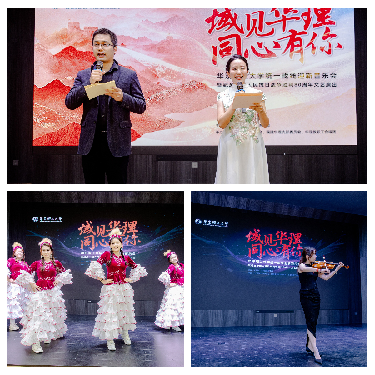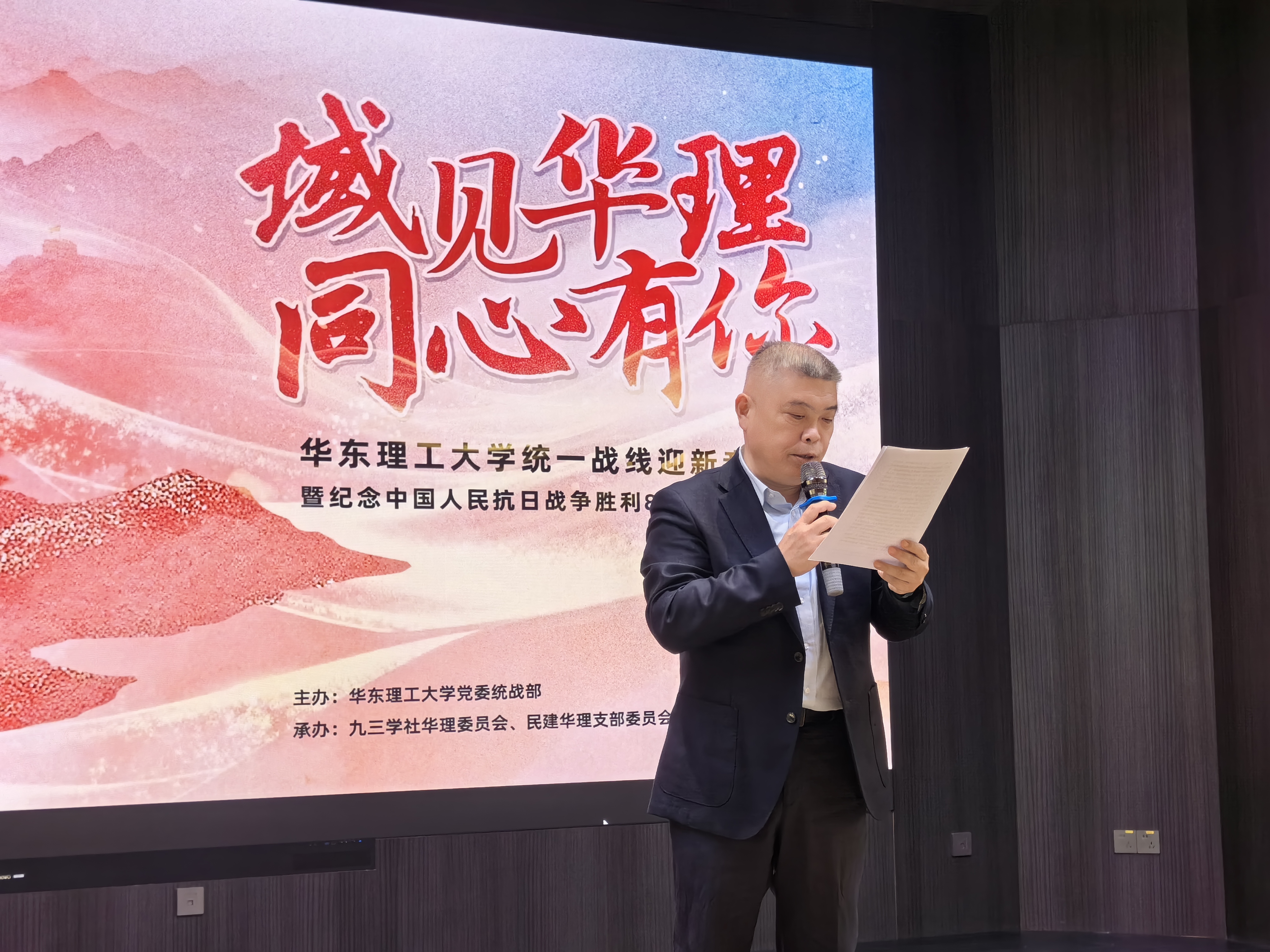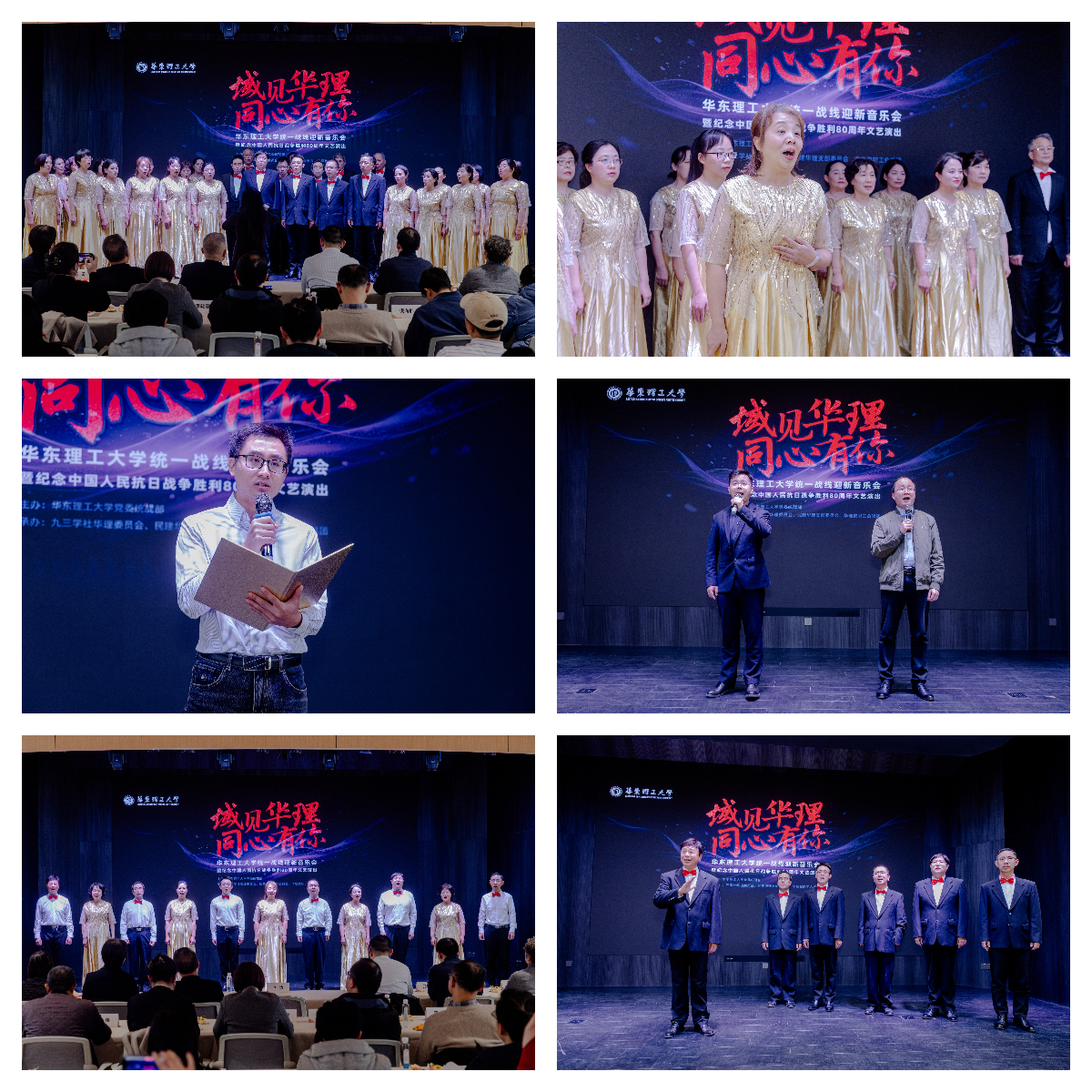 12月12日下午,由华东理工大学党委统战部主办、九三学社华理委员会、民建华理支部委员会、华理教职工合唱团共同承办的“域见华理 同心有你”华东理工大学统一战线迎新音乐会暨纪念中国人民抗日战争胜利80周年文艺演出在徐汇校区八角亭举行。校党委常委、副校长李涛出席活动并致辞,学校各民主党派、统战团体成员欢聚一堂,共赏艺术盛宴,共忆峥嵘岁月,共话奋进新篇。活动由九三学社华理委员会冯净冰、陈文尧主持。