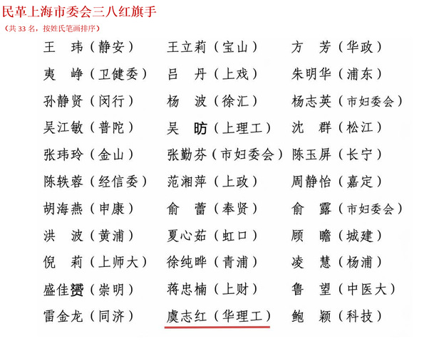 其中,我校民革党员虞志红荣获“2024-2025年度民革上海市委会三八红旗手”称号。祝贺!